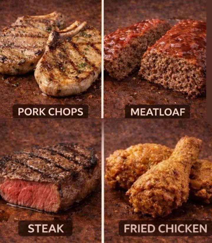 Here are full carnivore / zero-carb recipes for all four foods : pork chops, meatloaf, steak, and fried chicken—kept simple, high-protein, and grain-free 👇
