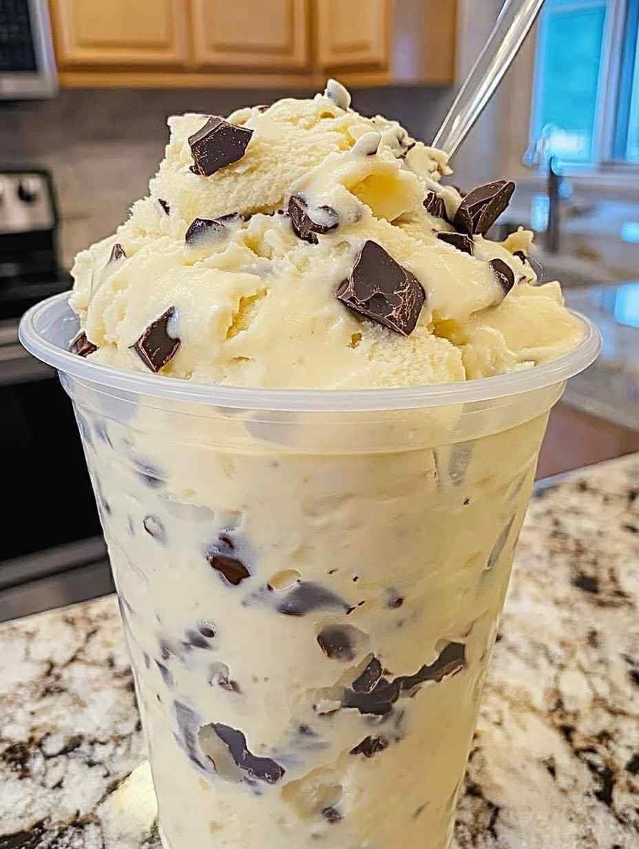 The texture is soft, creamy, and light, which makes it different from heavy desserts. The chocolate chips add a nice contrast with their slight crunch.